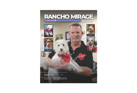 Rancho Mirage Insider Magazine features "Paws & Hearts" as the Cover Story for the November 2023 issue.